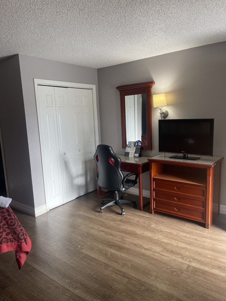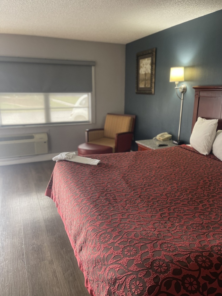 Unwind in our spacious Non-smoking King Room, featuring 27 square meters of comfort and convenience. This ground-floor room offers a peaceful pool view and comes equipped with a comfortable king-size bed, private bathroom, and seating area — perfect for relaxation after a day of exploring. Enjoy modern amenities like air conditioning, free Wi-Fi, a flat-screen TV, microwave, mini fridge, and a coffee/tea station. Designed with your comfort in mind, the room is soundproof, hypoallergenic, and includes thoughtful touches such as a desk, iron, hairdryer, and daily wake-up service. Whether you're traveling for business or leisure, this room provides everything you need for a restful stay.